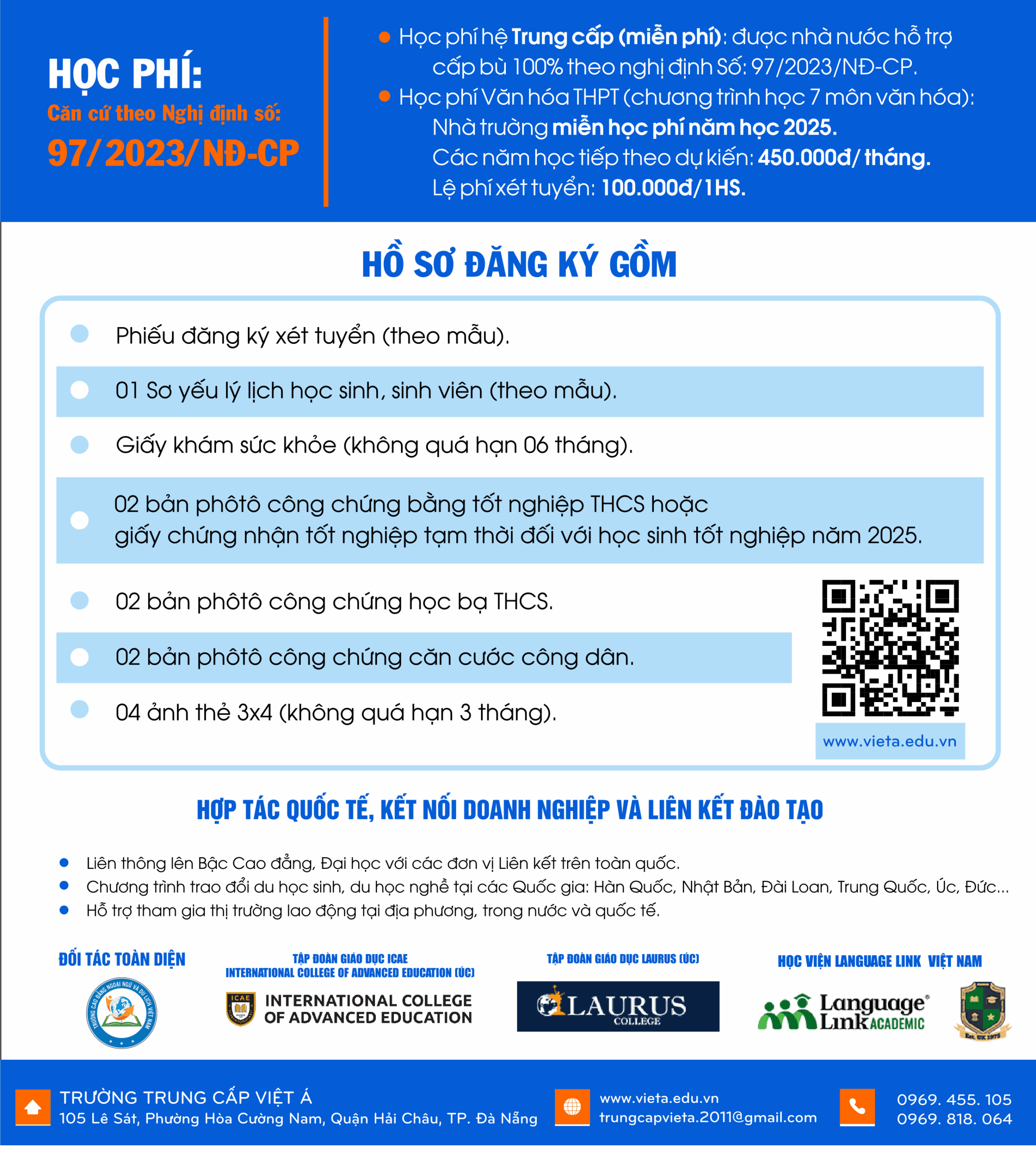 Trong quá trình theo học tại trường Trung cấp Việt Á, Học sinh được tham gia chương trình dạy nghề hoàn toàn miễn phí mà phụ huynh học sinh không phải chi trả bất kỳ kinh phí đào tạo nào theo chương trình cấp bù học phí của nhà nước.