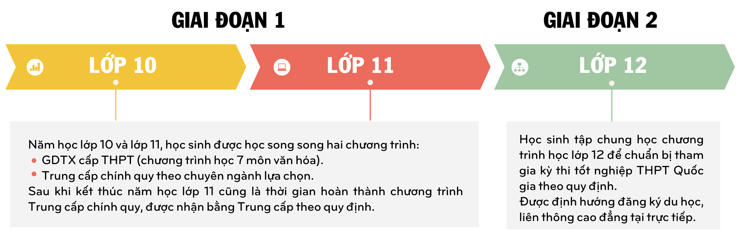 Sau khi tốt nghiệp, học viên nhận được 02 bằng tốt nghiệp và bằng tốt nghiệp THPT và bằng Trung cấp chính quy.